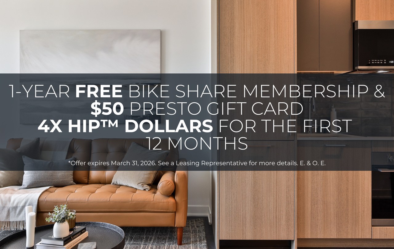 Discover everything you've ever wanted in a downtown urban lifestyle with a modern and professionally managed rental suites now available at Daniels on Parliament. With 25+ years of professional rental management experience, Daniels Gateway Rental Communities™ is trusted by over 4,000 individuals and families across the GTA to deliver exceptional residences and the highest standards of service. Choose from a wide selection of 1 to 3-bedroom suites to accommodate every lifestyle. Experience the best in comfort and contemporary style with access to premium amenities including a Fitness Centre, Wi-Fi Lounge, Co-Working Space, Party Rooms, Screening Lounge, Kids’ Club, resident-exclusive Outdoor Amenity Spaces including BBQ terraces, and so much more! Don’t miss out – claim your place in the city today with our incredible move-in offers! With a prime Downtown East location, Daniels on Parliament is the perfect home for those who want to embrace a vibrant, inclusive and culturally rich neighbourhood packed with great dining, shopping, cafés, recreation, entertainment and schools all close by. Plus, with the TTC at your doorstep, explore the best of the city with ease. For a limited time, every suite gets one (1) $50 PRESTO Card and one (1) FREE 1-Year BikeShare Toronto Membership while quantities last. See Leasing Representative for more details.
