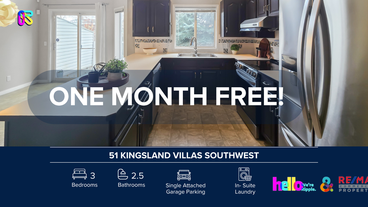 Fantastic 3 Beds, 2.5 Baths TownHouse | 1 Pet Allowed. 20lbs Max | ONE MONTH Free if move-in by Dec 23/25 Welcome to your next home! This beautifully maintained 3 Beds/ 2.5 Baths Townhouse at 51 Kingsland Villas SW offers the perfect blend of comfort, style, and convenience. Move-In Incentive: ONE MONTH FREE for move in by Dec 23/25 Located in the peaceful Kingsland community, prime SW location just minutes from Chinook Centre, Macleod Trail shopping, and top restaurants, this unit is ideal for anyone looking for a clean, modern, move-in ready space. SHOWINGS: Open-house format — book today! https showmojo com 79c3e9f0b2 l Prices, availability, and promotions subject to change without notice. Features: - Furnished or Unfurnished: Unfurnished - Pets: 1 Pet Allowed. 20lbs Max. $50 Monthly Fee - Smoking: Non-Smoking - Parking: Single Attached Garage - Storage Included: No - Laundry: In- Suite Laundry - Management Type: Full Management - Lease Term: Long Term - Utilities Included: No Utilities Included Why You'll Love It:?- Open-concept living room with an electric fireplace - Modern kitchen with stainless steel appliances and plenty of cabinet storage - Open-concept kitchen layout with dedicated dining space - Three spacious bedrooms, including a primary with full ensuite and walk-in closet - Window coverings included for privacy and light control Location Perks:?- Prime Kingsland location near Macleod Trail for quick commuting - Minutes to Chinook Centre for shopping, dining, and entertainment - Close to Kingsland Plaza, grocery stores, cafés, gyms, and everyday essentials - Short distance to Heritage and Chinook LRT Stations for easy transit access - Nearby parks and green spaces, including Kingsland Park and Heritage Park - Family-friendly neighbourhood with schools and childcare options nearby - Easy access to Glenmore Trail & major roadways for effortless city travel ONE MONTH FREE offer: A special savings equal to one month's rent (maximum), spread evenly across your 12 month lease. For leases with initial term less than 12 months, the incentive will be prorated accordingly. Book your viewing today — this one won't last.