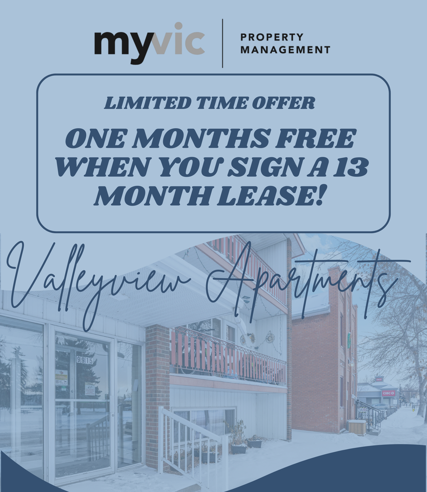 Welcome to Valleyview Apartments! Receive one month free when you sign a 13 month lease! Spacious units available for rent. Your new home is located in the hear of an amenity rich neighbourhood. Features include: Spacious bedrooms, Luxury vinyl plank flooring & Modern upscale fixtures & finishes Includes heat and water! Parking available for $25 Pet friendly with a monthly pet fee! Inquire today! This property is professionally managed by MyVic Property Management.
