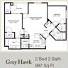 | Gray Hawk | 2 bed | 2 bath | 987 sqft | $1,460 /mo | 6 units available | Two Bedroom - Two Bathroom Take a virtual tour: https my matterport com show ?m=fGNvcktn331 | |