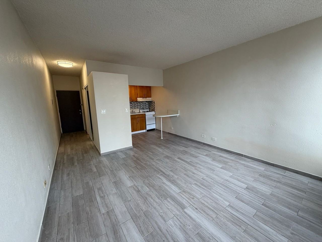 A well-maintained studio unit at the Kalakaua Plaza, a secure 8-story building with an elevator and parking garage. Located across from Palama Supermarket and Don Quijote. Electricity is billed to tenants each month. Assigned parking stall available for $100/mo. Coin laundry available on-site. No smoking and no pets allowed. Minimum lease term is for 6-months; 1-year is preferred. Minimum income qualification is 2.5 times monthly rent. Renters insurance is required.