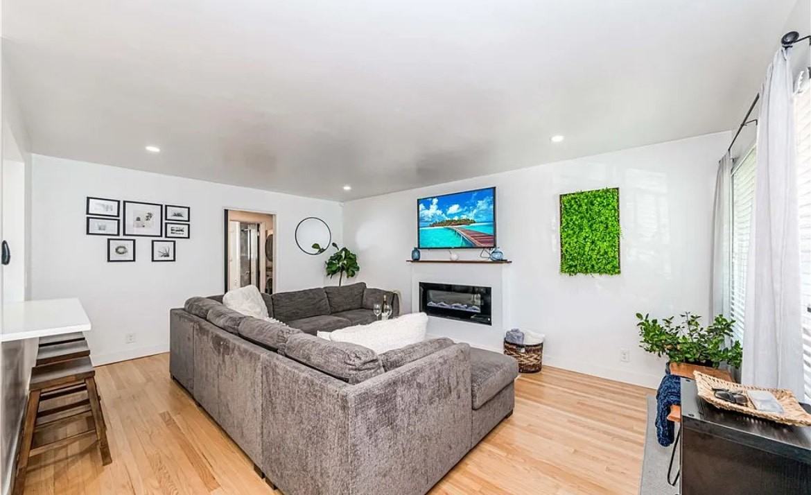Welcome to your new beachside retreat! Just a block from the shore, this one bedroom, one bathroom condominium is perfect for laid-back coastal living. The open floor plan features a newly upgraded kitchen with LG ThinQ Smart Appliances , quartz countertops and sleek shaker cabinets with soft close features, pantry and adjustable shelves. Kick back by the electric fireplace and enjoy the natural light streaming through double pane windows complemented by original refinished hardwood floors in an organic light shade, a modern front door and fans with remote control dimming. This place has the right vibes. You love the useful in unit laundry with an LG ThinQ smart washer and dryer that can be controlled via app from your phone, next to a spa ? like remodeled bathroom. The condominium complex offers individual storage closets for each unit and secured mailboxes for added convenience. Please inquire about possibility for monthly parking. Located near Long Beach landmarks such as the Queen Mary, the Long Beach convention Center, the Pike outlets, shopping, dining and with easy freeway access this condo lets you soak up the beachside lifestyle while staying connected to the city