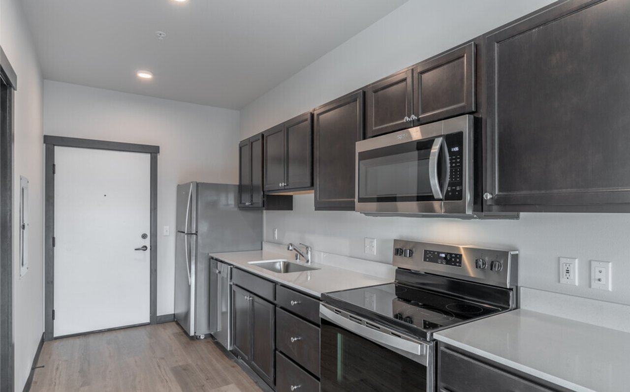 Welcome to The Trailhead Apartments where modern living meets exceptional amenities. Our brand-new, never-been-lived-in apartment units offer a range of layouts to suit your needs, including studios, one-bedroom, two-bedroom and three-bedroom unit options. Every apartment at The Trailhead is designed with your comfort in mind. Enjoy the convenience of air conditioning, ensuring a pleasant living environment year-round. Forget about searching for parking, as our property has a parking garage for residents and additional outside parking. Don't miss out on the opportunity to make The Trailhead your new home. Contact us today to schedule a tour!