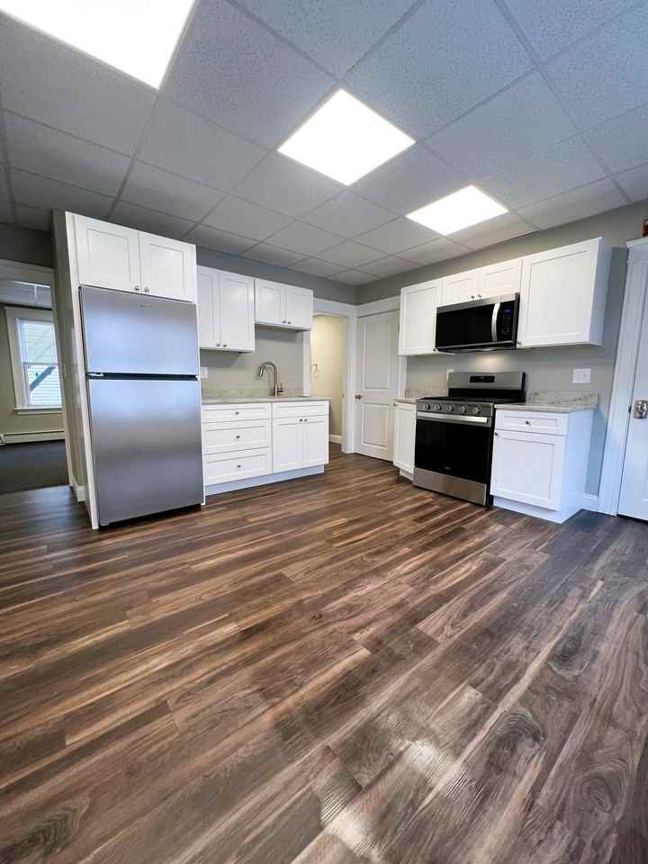 | Hebert - 2F | 2 bed | 1 bath | 985 sqft | $1,800 /mo | Completely renovated two-bedroom, one-bath apartment located on the second floor in a well-established Woonsocket neighborhood. This bright, move-in-ready apartment has been updated throughout with fresh paint and brand-new carpeting. The fully renovated kitchen features white cabinetry, granite countertops, and stainless steel appliances including a refrigerator, gas stove, and microwave. The layout offers two bedrooms, a comfortable living room, and an open kitchen design. Enjoy the enclosed three-season front porch that spans the width of the building — perfect for relaxing during the warmer months. Heat, water, and sewer are included in the rent. The apartment also includes basement coin-operated laundry, a storage unit, and one assigned parking space. We allow up to two pets per apartment (dog breed restrictions apply). There is a one-time nonrefundable $100 pet fee plus $25 per pet, per month pet rent. Hurry, this gem won't last! |