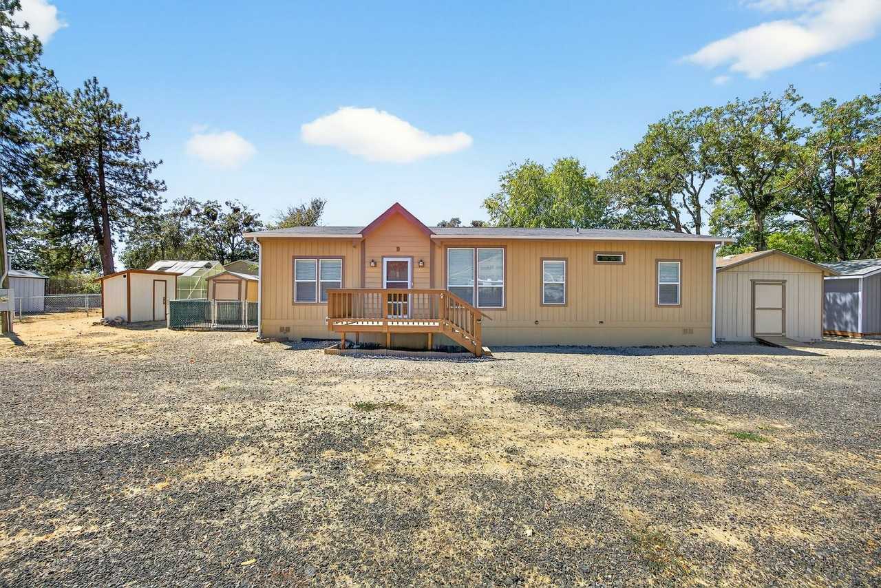 Modern and inviting 3 BD 2 BA split-floor-plan manufactured home built in 2016 offering 1,456 sq ft of bright, open living space. Featuring new flooring, high ceilings, and abundant natural light, this home combines comfort and functionality. The spacious layout provides privacy between the primary suite and secondary bedrooms. This home shares a 1-acre lot w/ 2 other homes, creating a small community feel while still offering privacy. Enjoy outdoor living on the front deck or relax on the private back patio. Two matching storage sheds provide excellent additional storage. Parking is available for up to 2 vehicles. Rent includes quarterly pest control, garbage service, and semi-annual landscape cleanup of the common areas. Located on a shared well (with Unit C) and includes access to a community greenhouse. Fiber internet available. Tenants are responsible for landscaping within the fenced yard and around the home, plus sewer and electric. Up to 2 dogs under 40 lbs allowed (no cats).