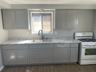 - Sleek gray cabinetry