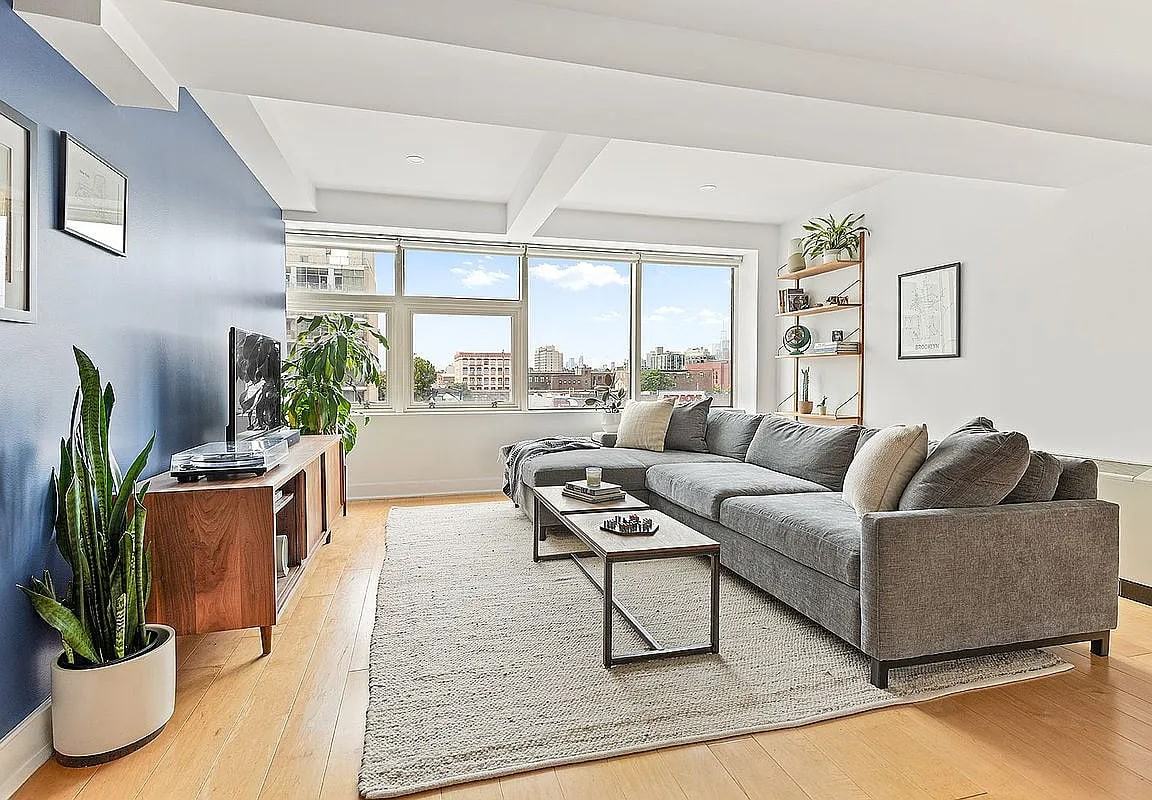 From the moment you enter, you?re greeted by abundant natural light streaming through a full wall of oversized, soundproof windows. The expansive living room flows seamlessly into a flexible home office area and an open-plan kitchen and dining space?perfect for both relaxed daily living and effortless entertaining. The chef?s kitchen features stainless steel appliances and plenty of counter space for cooking and gathering. The serene primary suite is a true retreat, with wall-to-wall west-facing windows that capture breathtaking sunsets and downtown Manhattan views. It easily accommodates a California king bed and features a very large custom walk-in closet outfitted with an Elfa storage system. The spa-like en-suite bath is complete with marble finishes, a rainfall showerhead, and a luxurious sense of calm. The second bedroom is equally inviting, with sweeping south- and west-facing views of downtown Manhattan as well.