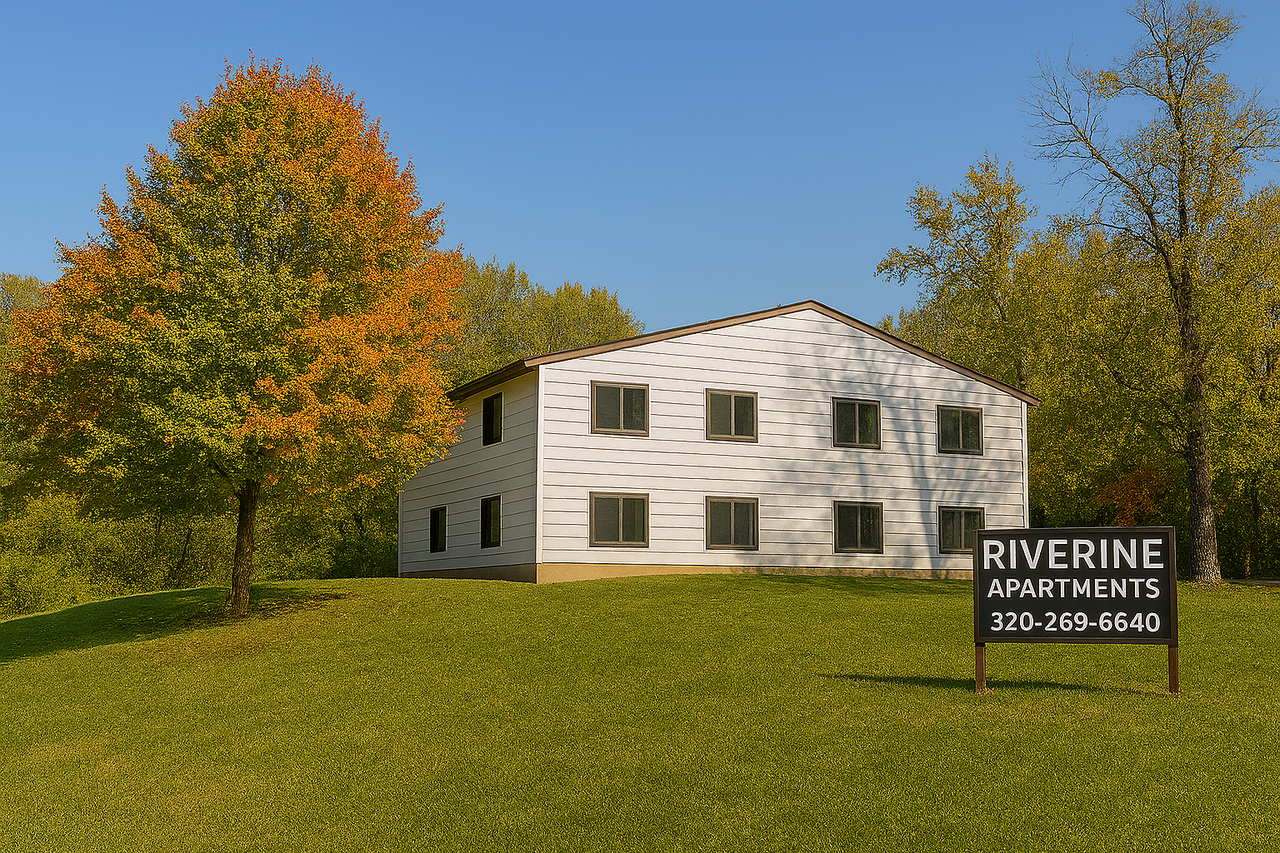 Now under New Ownership and New Management! Riverine Apartments offer 1 and 2-bedroom apartments with water, sewer, and garbage included in the rent. Rent is based on 30% monthly income, and Rental Assistance may be available for qualified applicants. Riverine Apartments are non-smoking and have on-site laundry facilities and off-street parking. Riverine is also pet-friendly! A Pet Deposit of $300 per pet plus proof of spay/neuter and up-to-date vaccination status is required. For more information, please contact Kaytee at 320-269-6640 ext. 233, TTY 711. "This Institution is an Equal Opportunity Provider."