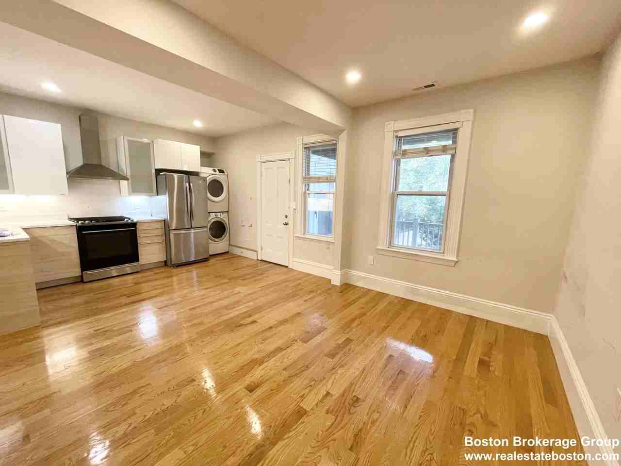 This stunning 3-bedroom duplex at 108 Buttonwood St. features a brand new, modern bath and kitchen with stainless steel appliances and granite countertops. Enjoy the spacious eat-in kitchen, high ceilings, and decorative fireplace, along with the convenience of in-unit laundry and a walk-in closet for ample storage.