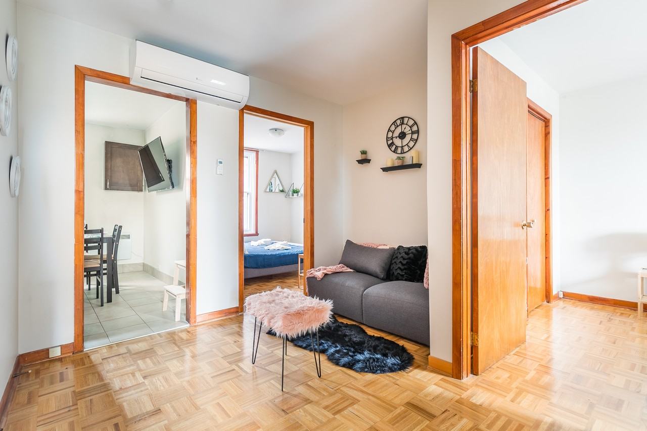 Located in the heart of the Plateau, Montreal This well-designed 750 sq ft 3-bedroom unit is ideal for a group of students or young professionals looking to share a comfortable and functional living space in one of Montreal’s most vibrant neighborhoods. While the unit is compact, it has been thoughtfully laid out to maximize space and comfort- plus, it features a private terrace, offering a rare outdoor escape right at home.