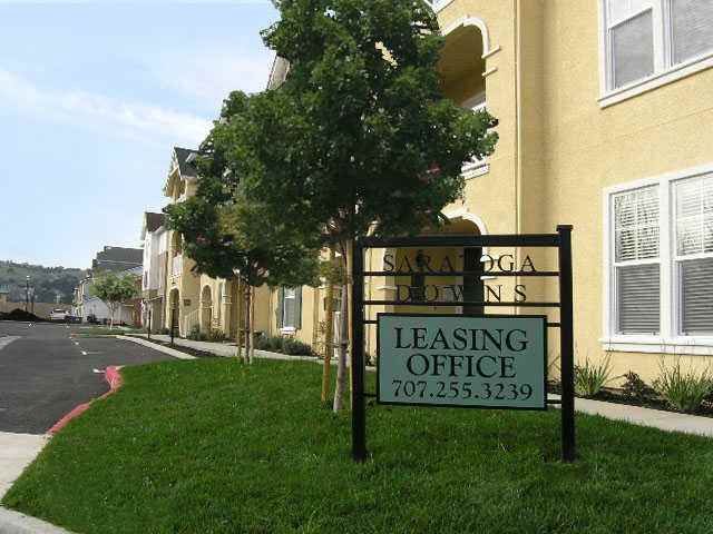 Call for prices and unit availability.Within the landmark Sheveland Ranch master-planned community. Visions of Napa are easy to imagine with lush vineyards, verdant hillsides, and historic architecture and nowhere captures the area's essence like Saratoga Downs. Just minutes from downtown Napa, close to schools, shopping, restaurants and more. LOOK AT THESE AMENITIES....All apts with stack washers/dryers and most with granite kitchen counters, 9' ceilings, ungraded wood cabinetry, marble vanities, custom lighting, garages available, enclosed carport structures, wheel chair access, on site maintenance, sundecks and patios, linens closets, storage, package receiving, individual water heaters, central heating and AC, microwaves, dishwashers, high speed internet access, phone and cable in each bdrm, tiled entry, walk-in closets, state of the art fire suppression system. FALL SPECIAL: First month FREE! Call for details. CALL TODAY - TOUR BY APPOINTMENT ONLY