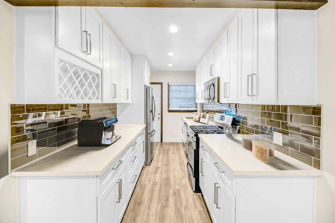 - Sleek stainless steel appliances