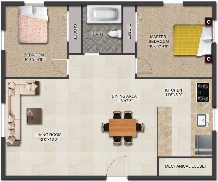 | Two Bedroom | 2 bed | 1 bath | 850 sqft | $1,099 /mo | 2 units available |