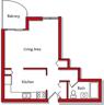 | Studio - A | Studio | 1 bath | 514 sqft | Spacious living room with a step-saver kitchen setup | ||