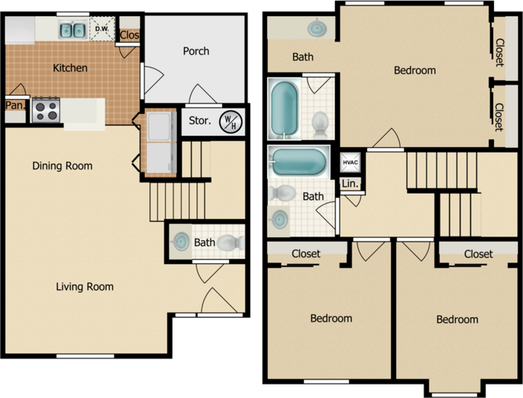At Sovereign Townhomes, we are proud to offer three bedroom apartment homes for rent. Designed with your comfort in mind, our features include being cable ready, 9-foot ceilings, hardwood floors, ceiling fans, central air and heating, walk-in closets, and washer and dryer connections. Cook that gourmet meal in your all-electric kitchen with a refrigerator and dishwasher. We are a pet-friendly community and offer pet waste stations.
