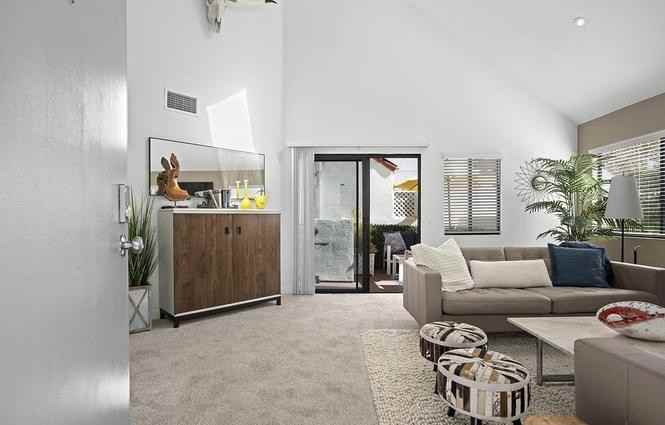 | San Diego, CA - Apartment - $3,550.00 Available April 2026 | 1 bed | 1.5 bath | 1,167 sqft | $3,550 /mo | 1 unit available | Discover a peaceful urban retreat in the highly sought-after community in the Marina District. This beautifully remodeled end-unit loft features soaring vaulted ceilings and abundant natural light, complemented by a cozy gas fireplace and a private patio. The modern kitchen includes mocha wave quartz countertops, white shaker soft close cabinetry, upgraded Samsung appliances, custom backsplash, and recessed lighting. Upstairs, a versatile loft with a built in Murphy bed can be used as a home office, den, or optional second bedroom. The primary bedroom offers balcony access and a remodeled ensuite bathroom with custom tiled bath/shower. Additional highlights include new carpeting, Samsung smart TVs, a custom granite kitchen table, and a contemporary ceiling fan. Extras: Secure parking space included. Located in the desirable north section of Park Row, residents enjoy resort-style amenities and easy access to downtown dining, entertainment, and waterfront attractions. |
