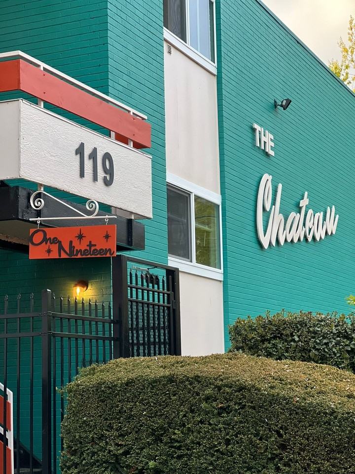 A classic updated Mid-century Modern, The Chateau is a 21 unit building on a half-acre+ of gated grounds with views of downtown Seattle. Set one block off the main thoroughfare, this building is a sanctuary in the bustling city. Mature flowering street trees line the front, while younger edible plants and trees are in back and ready for your enjoyment. This building is a few blocks from the first hill Seattle streetcar and one block north of Pratt Park and Broadcast Coffee Roasters. Thoughtfully updated on the exterior and interior from 2023 to 2025. The Chateau offers generously sized 1960s one- and two-bedroom floor plans with private decks, evening sun and air conditioning. The building architecture inspires a sense of community and natural light. The light fixtures, sourced from Hollywood California, are equipped with soft bulbs for a gentle twinkle to warmly welcome you home during Seattle’s winter. The automatic locking gate allows easy access to the large on-site parking lot, which easily accommodates SUVs. There are also secure, individual bike storage areas. Consider using the Seattle Laundry Service for pick up, laundering, folding and drop off of your laundry or make use of the commercial washers and driers in the large, clean shared laundry space. Entire building is very pet friendly with a private outdoor fenced dog yard coming winter 2025.