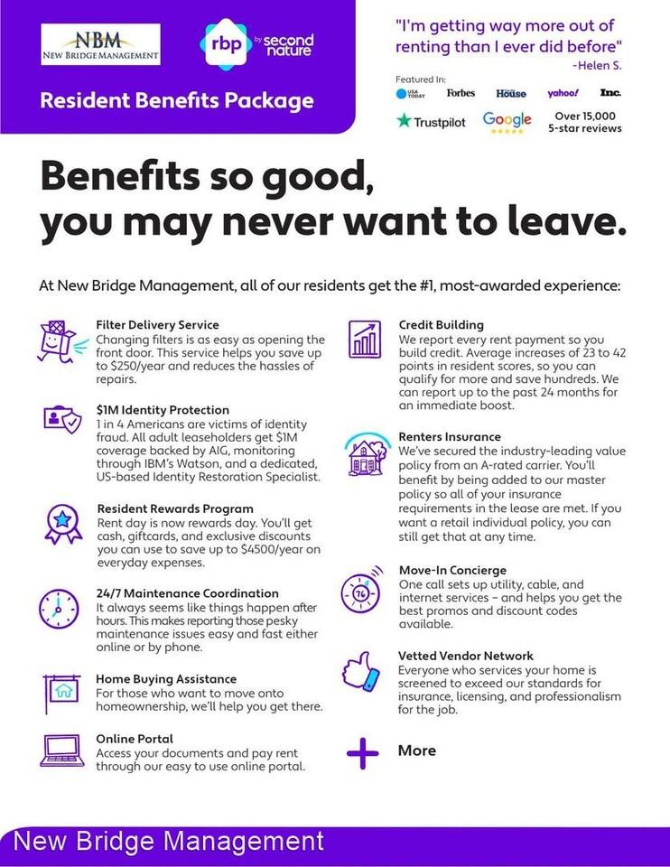 Residents are responsible for the Residents Benefits Package. No Pets Allowed