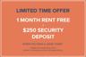 1 Month Rent Free + $250 Security Deposit
