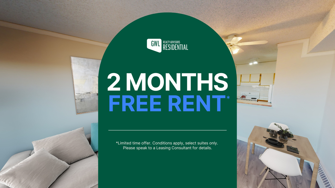 Receive Up to 2 Months Free on Select Suites! Ask about our 1 bedroom plus den and en-suite laundry suites. *Limited time offer. Terms and conditions apply.