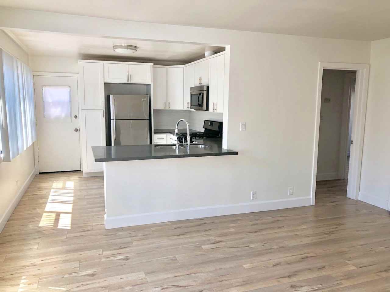| 2BR/1.0BA | 2 bed | 1 bath | 750 sqft | $2,695 /mo | 1 unit available | BEAUTIFUL 1st floor, back unit with laminate floors, elegant black granite counters, upgraded kitchen, extra storage cabinets, wall heater, REMODELED bath and laundry facility. *Recent upgrades: mirrored closet, new kitchen & bathroom faucet, new medicine cabinet, new shower head, new bathroom light fixtures, new window blinds, new living room fan, new living room ceiling light. 1 Garage Parking Space + 1 Tandem Outside Parking Space. Pet friendly with pet deposit & monthly pet rent. Within walking distance to many shops, restaurants and grocery. Tenant pays all utilities, including water, sewage, trash. Schedule a tour of your new home today! |
