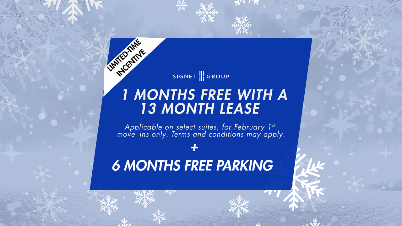 Indoor and Outdoor parking ($)Visitor parkingControlled access and surveillance camerasEnhanced cleaning procedures in high traffic areasThorough cleaning of every suite before you move-inFriendly and professional property management trained to ensure that your home is a clean, and safe environment while confined to your suiteMyCommunity Portal