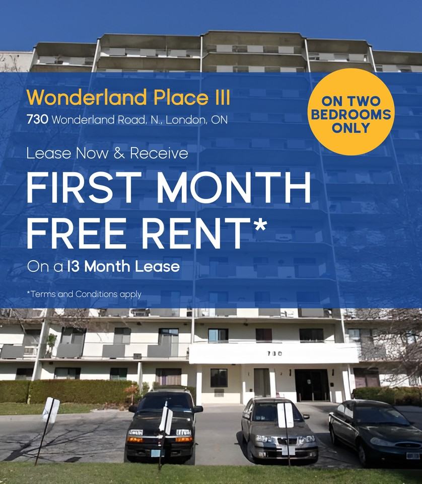 BRAND NEW RENOVATED UNITS! If you're looking for an affordable London Ontario Apartments in a great location with an easy bus ride or drive to Western, the downtown scene, or shopping, then check out Wonderland Place III. In addition to a great location and low price, each apartment features dishwashers, walk-in closets, and balconies that offer incredible city views from the upper floors. All apartments are cable and internet ready for your convenience, and our variety of floorplans for our one and two-bedroom apartments give you options to choose from. Whichever floorplan and price point suits you best, you'll always have access to the building's amenities that make Wonderland Place III stand out as an affordable London Ontario Apartments. This apartment rental features a seasonal pool and sauna, as well as a fitness room and Sparkle cashless laundry facilities with text message notifications for when you're laundry is done! There are also options for covered and open parking for low monthly rates, with heat and water included in your monthly rent. Public transit options are right outside your door if that's the best way for you to travel, opening up London for you to explore. These London Ontario Apartments allows easy access to key parts of the city. You'll find London's downtown scene just down Oxford Street. All the fun and thrills of downtown London are just a short drive or bus ride away. Wonderland road is also a key travel artery in London that can get you to [Western University](https www uwo ca ), [Masonville](https www cfshops com masonville-place html) & [White Oaks Mall](https www whiteoaksmall ca ) with ease. The combination of this great and convenient location with an affordable price is a hard find in London, so contact Drewlo today to find out more about our available units at our Wonderland Towers apartment rentals, so we can help you find the best place for you to live in London at the best possible price. RENT. SAVE. OWN. – Exclusive Homeownership Savings For each month you rent with Drewlo Holdings, you’ll receive $400 per month (up to $15,000) towards the purchase of a brand-new home or townhome from the award-winning Ironstone Building Company. Learn more about this exclusive RENT. SAVE. OWN. program at [Drewlo Holdings](https www drewloholdings com save) Close to bus routes: 10 Wonderland, 17 Argyle Mall, 20 Beaverbrook, 27 Capulet, 33 Proudfoot, and 91 Express. - Video surveillance - Elevators - On-site staff - Outdoor pool - Laundry facilities - Fitness room - Wheelchair Access - Fridge - Stove - Balconies - Carpeted floors - City views - Walk-in closets - Cable ready - Public transit - Shopping nearby - Parks nearby - Internet ready - Well appointed lobby - Eat-in kitchen - Seasonal pool - Rogers Cable and Bell satellite available through building cable system - Hydro paid to Wyse Meter Solutions - Secured Entry - Barrier-free access to entrance - Dishwasher Please Note: