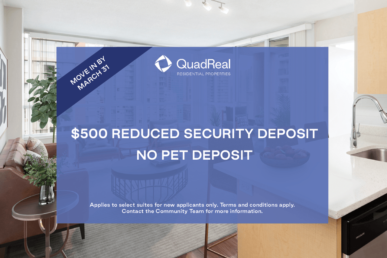 $500 Reduced Security Deposit Applies to select suites for new applicants only. Terms and conditions apply. Contact the Community Team for more information.