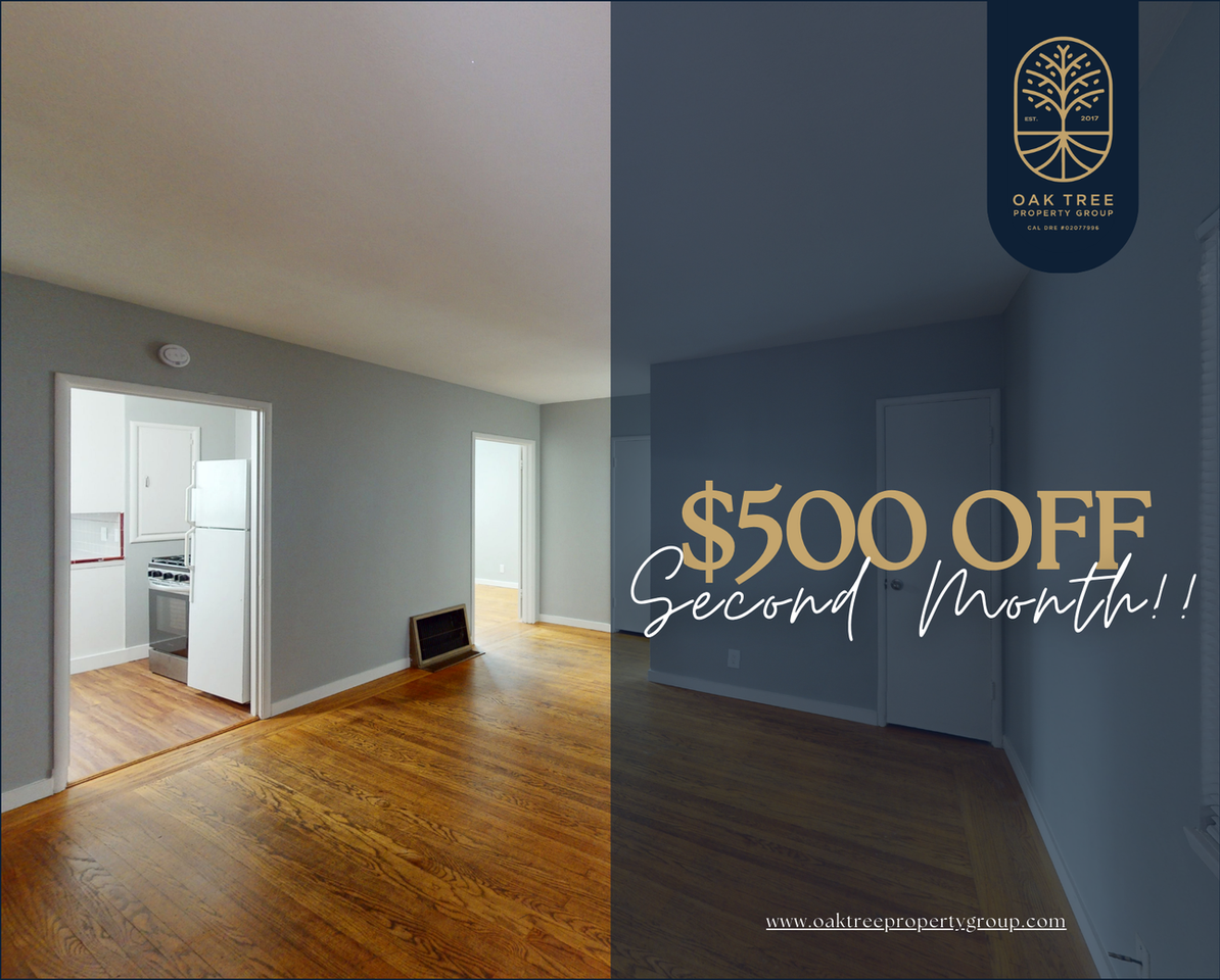 Virtual Tour: https my matterport com show ?m=jCjMFLHv2es **$500 OFF second month**Charming & Comfortable 1 Bedroom Apartment!! - 1 Bedroom. - 1 Bathroom. - Comfortable Kitchen. - Ample living room. *Stylish Laminate Wood Floors. *Tiled floor in the bathroom. - Located near Downtown San Leandro with easy access to major streets like Davis St and San Leandro Blvd. - Walking distance to local dining options, including Round Table Pizza, 85C Bakery Cafe, and other neighborhood restaurants and cafés. - Close to the San Leandro BART Station, providing convenient transit access to Oakland and San Francisco. - A central location with shopping, restaurants, and public transportation nearby. * Parking * Garbage area * Mailbox 12 months lease ---Requirements:--- * 650approx Credit Score * 2.5x Income/rent *As property owners or managers, we do not discriminate in the rental of property based on race, color, religion, sex, sexual orientation, disability, familial status, or national origin. Please see our other vacancies at: https www oaktreepropertygroup com vacancies