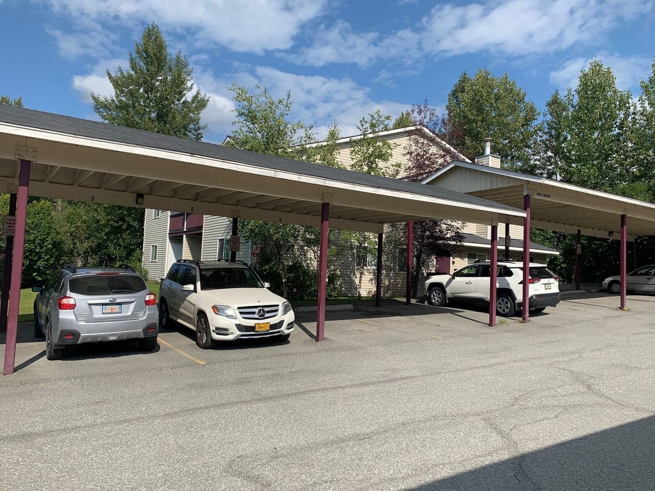 2 bedroom 1 bath unit in SECURE, quiet building with washer/dryer available in the building. Full size kitchen with modern appliances, comfortable floor plan, on-site storage. Private balcony. Assigned carport parking with plug-in avail. Near Abbott Fred Meyer with easy access to shopping, dining and parks. $1350/mo rent plus electric. Available now, no pets, no smoking, 1 year lease.