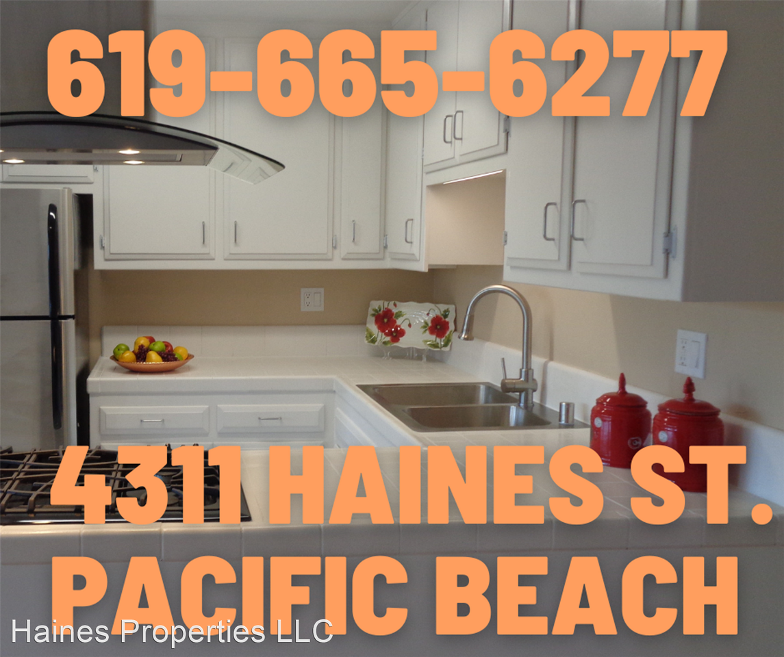 | 4311 Haines St | 2 bed | 2 bath | 975 sqft | 1st floor in Pacific Beach - Ultra Large 2BD 2BA - Wood Floors - Custom Kitchen - Large Patio - -Full kitchen with window, Stainless Steel Appliances including Dishwasher, Range, Microwave, & Refrigerator. Abundant Cabinet Space -Centrally located in Pacific Beach - Walking distance to the Beach, Bay, Shopping, & Restaurants -Wood flooring throughout -Spacious dining room with large ceiling fan -Oversized living room with large windows opening onto huge patio, keeping your apartment bright & sunny -Master bathroom and 2nd bathroom-vanity, large designer mirrors with upgraded lighting, custom medicine cabinets, and ceramic tile flooring -Plenty or extra storage -Bedrooms fit for King or Queen. If you're feeling the pinch of insufficient closet space, we have the closets for you! Our floor to ceiling mirrored closet doors contain custom organized adjustable closet shelves. -Central Heat & Air Conditioning -Private end patio. Private Entry. -Laundry Room on site -Small pet upon approval -Non-Smoking community Please call for more information. Tours by appointment |