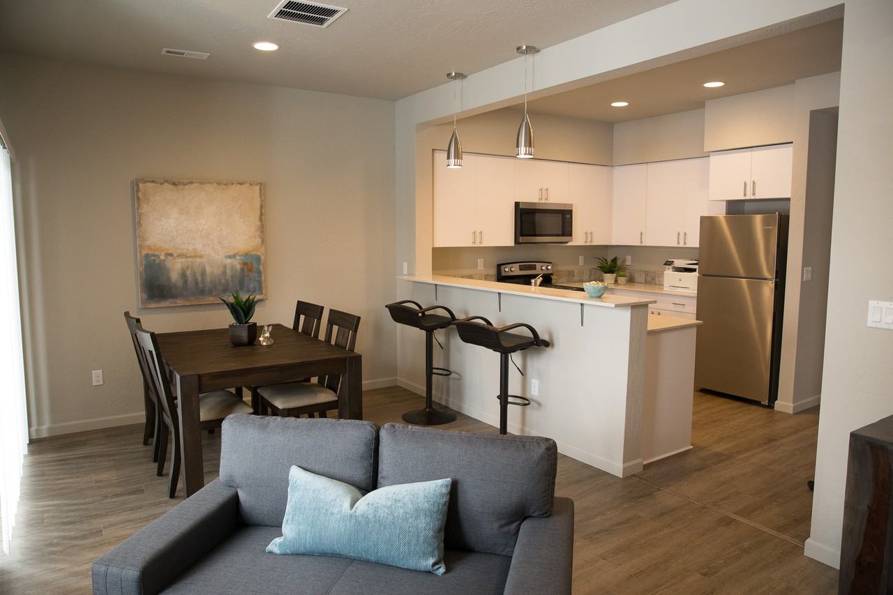 1,225 sq.ft. with no one above or below you, Two master suites w/walk-in closets & master baths, 50 Mb synchronous fiber internet, Attached garage w/door into home, Euro cabinets with soft-close doors & drawers, Quartz countertops, stainless appliances, Washer & dryer and garbage disposal included, Additional closets & pantry for storage, Gas forced-air heat, gas fireplace & central A/C, Patios to backyards(some are fenced), LED lighting throughout, Professional on-site management. Contemporary townhomes ready for move-in call today for your personal tour.