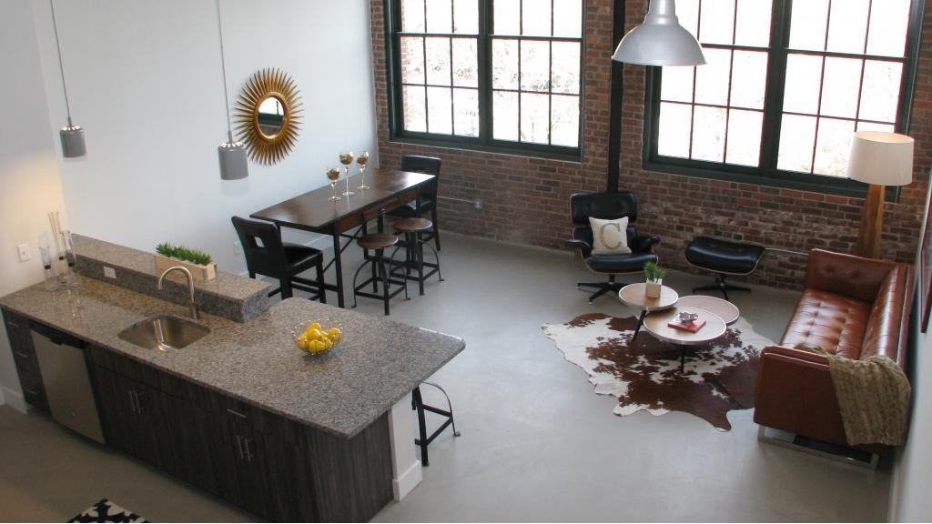 Studio, One, Two and Three Bedroom Apartments, Fiber optic cable ready, Free Parking, Billiard Room, Covered Bike Storage, Outdoor Patio, Generous Closet Space, Full fitness center, yoga room, Exposed Beams And Brick Walls, LEED Gold certified, On-site management, maintenance, concierge, Club room