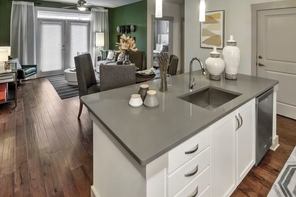 Live in one of Deerfield’s most desirable neighborhoods in an equally sought after community. Juncture, mere minutes from Alpharetta City Center and the attractions of Avalon, is where modern living meets chic aesthetic. If you are looking for a one or two bedroom home where you can find high-end finishes and community amenities, look no further than Juncture. Featuring granite and quartz countertops, stainless-steel appliances, hand-scraped hardwood flooring, and sweeping high ceilings complete with crown molding, our apartments are fully equipped with everything you need to live a life of luxury. We also offer high-end community amenities that combine form and function, like our state-of-the-art wellness center, expansive pool, and elaborate entertainment lounge. At Juncture, we aren’t interested in creating spaces that are sufficient, we aim to exceed the standards of luxury in every aspect of our homes and community. Welcome to better living. Welcome to Juncture. Apartment amenities: A range of expertly designed floor plans Expansive 9' or 10' ceilings* Authentic hand-scraped hardwood floors 2" stylized wood blinds Elegant built-in wine rack*, bookshelf*, desk* and display niche* Upgraded designer lighting package including pendant and track lights* Full-size washer and dryer* Side-by-side stainless refrigerators Extravagant walk-in closets with wood shelving Additional storage* Energy efficient windows and air conditioning Ceiling fans with lighting in bedrooms and living room Private balcony Convenient live-work spaces* Services: Elaborate entertainment lounge with Wi-Fi café, serving bar and TV gallery Business center with PCs and iMacs Fully-equipped wellness center with highly-specialized Technogym cardio machines, free weights and individual strength training machines Resort-style swimming pool with expansive tanning areas and interactive water features including LED lighting Grilling areas with premium outdoor cooking equipment Outdoor lounge with fireplace and TV Relaxation courtyard with lush landscaping Private one car garages* Controlled access Outdoor fire pit with entertaining space Pet friendly community with on-site dog park