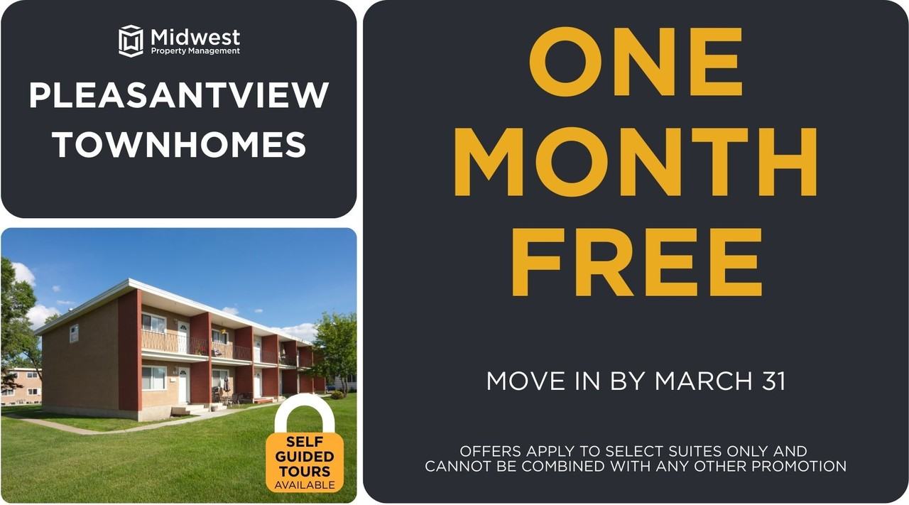 One Month Free One Month FREE! Apply by March 31 | Limited Suites Available | Offers apply to select suites only and cannot be combined with any other promotion Explore on your own schedule with our free self-guided tours. Simply select a unit, book a time, and tour at your pace. A valid ID is required to reserve. [Self Guided Tour](https prop peek us 668c75b7bbe11732e731384f self-guided-tour ) An oasis beyond compare, Pleasantview Townhomes is situated on 22 acres of manicured trees and open green space for all residents to enjoy. Our family friendly townhomes for rent in South Edmonton provide comfortable 2, 3, and 4 bedroom townhomes. Convenient access to schools, public transit routes, the University of Alberta, Southgate Center, and the lively Old Strathcona neighbourhood. Settle yourself into Pleasantview Townhomes, the perfect place to be.