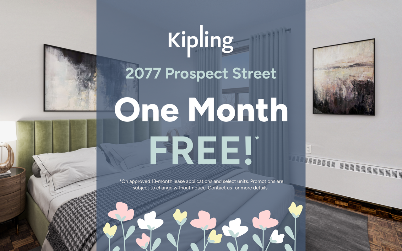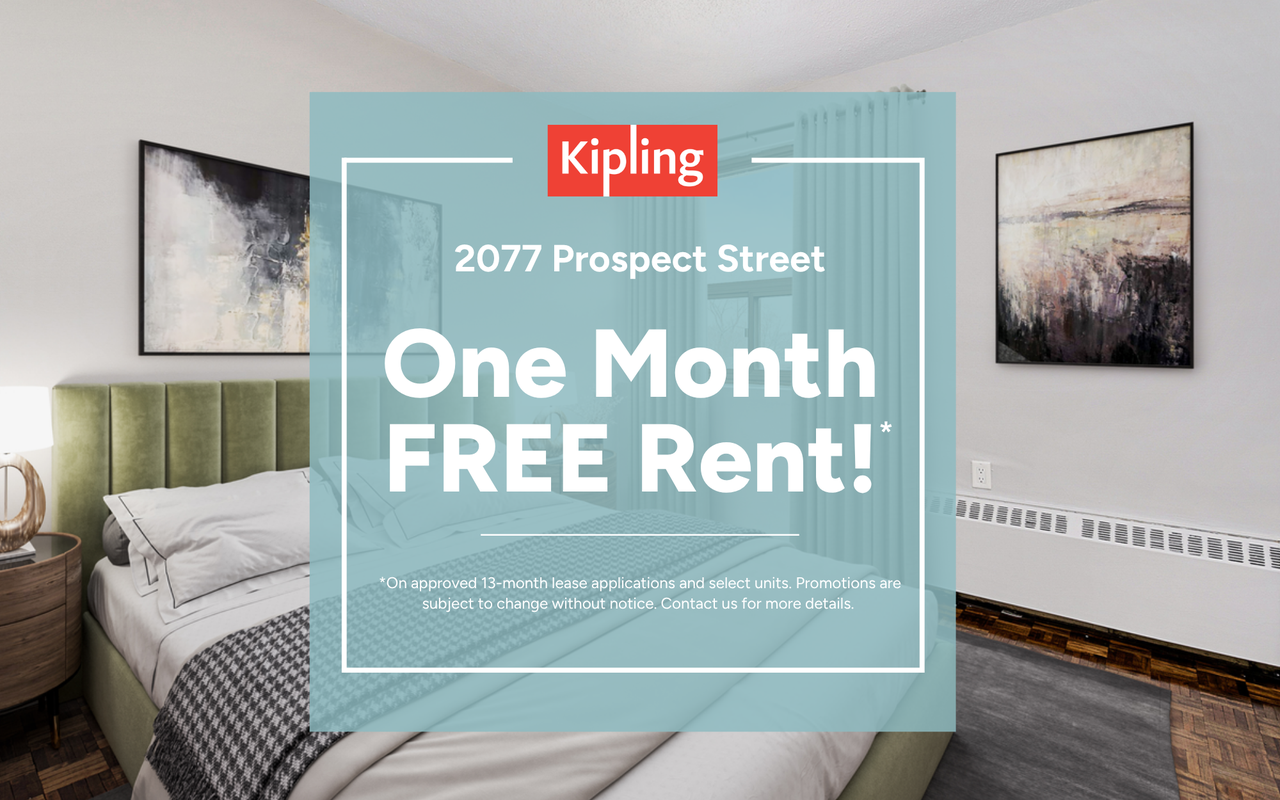 Receive One Month Free Rent!*2077 Prospect Street is located on a beautiful tree-lined street just north of downtown Burlington. This family and transit-friendly community features a collection of renovated 1 and 2-bedroom suites with modern finishes, including balconies, hardwood floors, and contemporary appliances. Residents enjoy access to a variety of convenient amenities:On-site laundry facilitiesPrivate BBQ terrace with seating and greeneryOutdoor playground for children24-hour video surveillance for added securityPet-friendly communityProfessional on-site management team2077 Prospect Street offers excellent access to public transit and major highways, making commuting simple. Optimist Park is just a 4-minute walk, Burlington GO Station is 7 minutes away, and Burlington Centre is only 5 minutes away. Shops, restaurants, waterfront trails, Lake Ontario, and downtown Burlington are all easily accessible by foot, bike, or car.*On a 13-month lease. On approved lease applications and select units. Conditions apply. Promotions are subject to change without notice. Contact us for more details.