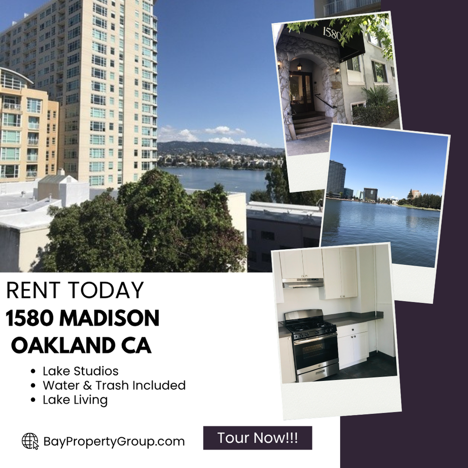 Marketing Description Step into a bright and airy studio just moments from Lake Merritt, where classic charm meets everyday comfort. Natural light fills the space, highlighting hardwood floors, high ceilings, and a thoughtfully designed layout that feels both open and functional. A cozy breakfast nook adds character, while the renovated kitchen features modern appliances and clean finishes perfect for daily living. Located in Oakland’s desirable Lakeside neighborhood, you’ll enjoy easy access to local cafés, restaurants, shopping, and scenic lakefront paths, with BART and freeway connections nearby for a seamless commute. This home offers a balanced lifestyle of convenience, charm, and city energy. Property Details 1580 Madison St., Oakland, CA 94612 Rent: $1,800/month Deposit: $1,800 Studio | 1 Bathroom Street Parking | No Pets Lease Term: 1 Year | Available Now Features Bright unit with abundant natural light Hardwood floors & high ceilings Spacious layout with breakfast nook Renovated kitchen with refrigerator and gas stove/oven Laundry center in building Water & garbage included Walk Score of 97 Contact La’Shae Alexander Leasing Agent/Realtor Bay Property Group CAL DRE #02098598 **** (510) 365-0575 Fax: (510) 836-0660 Application Requirements $35 application fee per adult Minimum 650 credit score Income must be 3x the rent Positive landlord references required Apply online at: http www baypropertygroup com vacancies