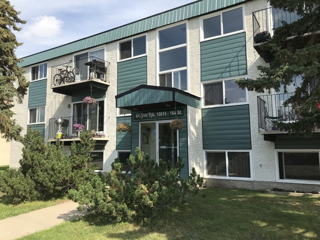 What makes 164 Street Apartments great? 164 Street Apartments is a welcoming low-rise building located in Glenwood. Our freshly painted one and two bedroom suites feature updated flooring, large storage rooms, and 3 appliances. Residents enjoy professional onsite management, modern laundry facilities, large storage rooms and one energized parking stall per suite. Ample street parking is available fpr visitors. Who lives at 164 Street Apartments? Families and professionals alike enjoy convenient access to the Misericordia Community Hospital, MacEwan University, and Downtown Edmonton. Commuting is simple with transit just a short walk from the building. What neighbourhood amenities can I access nearby? Shop close to home with Mayfield Common and other large department stores just a short walk from the building. There are great restaurants, banks, and convenience stores within walking distance and Safeway is just a short drive away. Community interests include nearby parks, golf courses, and Jasper Place Wellness Centre. Additionally, the infamous West Edmonton Mall is only 7 minutes away. This building is professionally managed by Ayre & Oxford Inc.