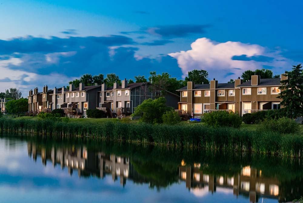Located in the Tyndall Park neighbourhood, the side by side townhomes overlook a beautiful man-made pond, where you can sit on the deck and watch the world go by. Each townhome has a private garage and an unfinished basement that houses the insuite laundry and provides lots of storage space.