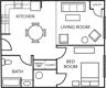 Our renovated 1-bedroom apartments offer a full kitchen with wood-style flooring, an in-unit washer and dryer, a welcoming living area, a bedroom with a generous closet, and a bathroom with a shower/tub combination.