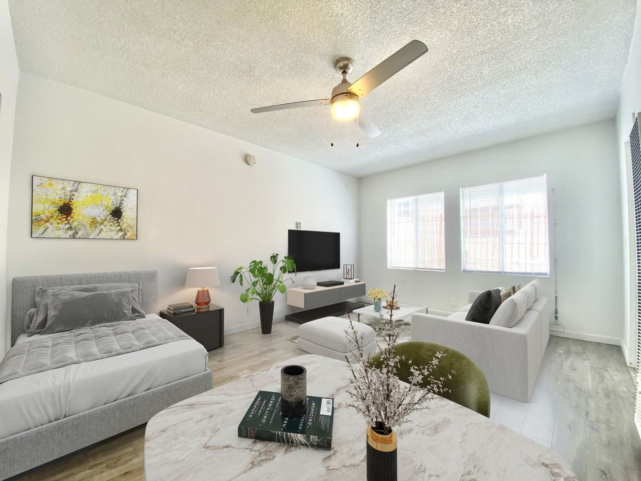 | Small Studio | Studio | 1 bath | $1,395 /mo | 1 unit available | Welcome to Chateau Mariwood, a beautifully renovated studio apartment in the heart of Koreatown, Los Angeles. Enjoy a central location with easy access to major freeways and public transportation, placing you just minutes from Downtown LA, USC, LA Live, and more. Whether you’re dining out, heading to an event, or commuting, everything you need is close by. Apartment Features - Renovated kitchen with updated appliances - Modern bathroom - Brand new wood flooring - Freshly painted interior - On-site laundry facilities - Fitness center - Gated building - Small pets welcome - Tenant pays all utilities Location Highlights - Prime Central LA location - Minutes from Downtown Los Angeles, USC, LA Live, and major nightlife - Excellent transit options with access to the Red and Purple Metro Lines - Surrounded by restaurants, cafés, and shopping Walk Score: Walker’s Paradise https www walkscore com score 818-s-mariposa-ave-los-angeles-ca-90006 Tour Information: Showings available by appointment only. Please call or email to schedule your private tour, contact: (213) 319-2804 **** Photos may not represent the exact unit currently available. We are an Equal Housing Opportunity provider and comply with all applicable Fair Housing laws. Don’t miss your opportunity to call Chateau Mariwood home. Contact us today! |