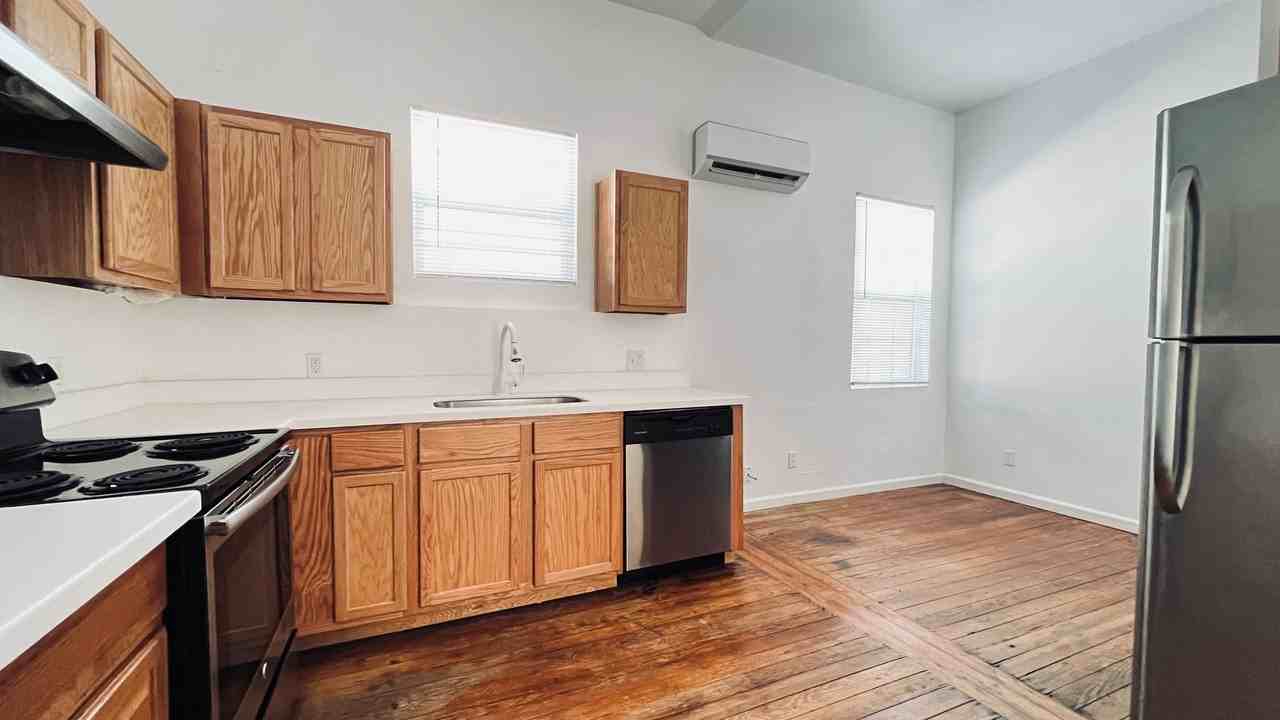 | 0BR/1.0BA | Studio | 1 bath | 410 sqft | This contemporary East Austin residence blends modern design w/ everyday functionality. The exterior features clean lines, wood & metal accents, & a welcoming front porch. Native landscaping w/ drought-tolerant plants & a fenced front yard add to the inviting curb appeal. Inside, polished concrete floors stretch through the bright, open layout, w/ expansive windows that fill the space w/ natural light. The studio floor plan offers seamless flow between living, dining, & sleeping areas, creating an airy atmosphere for relaxing or entertaining. High ceilings & sleek lighting enhance the spacious feel. The kitchen includes custom cabinetry, quartz countertops, stainless steel appliances, & a center island w/ bar seating—ideal for casual meals or morning coffee. Premium finishes & efficient storage add style & functionality. A modern bath features a glass-enclosed shower, stylish fixtures, & contemporary tilework for comfort & sophistication. Step into the private, fenced backyard w/ a patio perfect for outdoor dining, grilling, or relaxation. Drought-tolerant landscaping ensures easy maintenance, & a privacy fence offers a peaceful retreat. Located in vibrant East Austin, enjoy nearby spots like Suerte, Launderette, Veracruz All Natural, The White Horse, & Hotel Vegas. Outdoor activities await at Edward Rendon Sr. Park & Lady Bird Lake, w/ shopping & entertainment at Plaza Saltillo & East 6th just minutes away. Private gyms, yoga studios, & golf courses are also nearby. W/ quick access to I-35 & Cesar Chavez Blvd, downtown Austin, UT, & The Domain are a short drive away. Designed for modern living, this studio offers style, comfort, & convenience. |