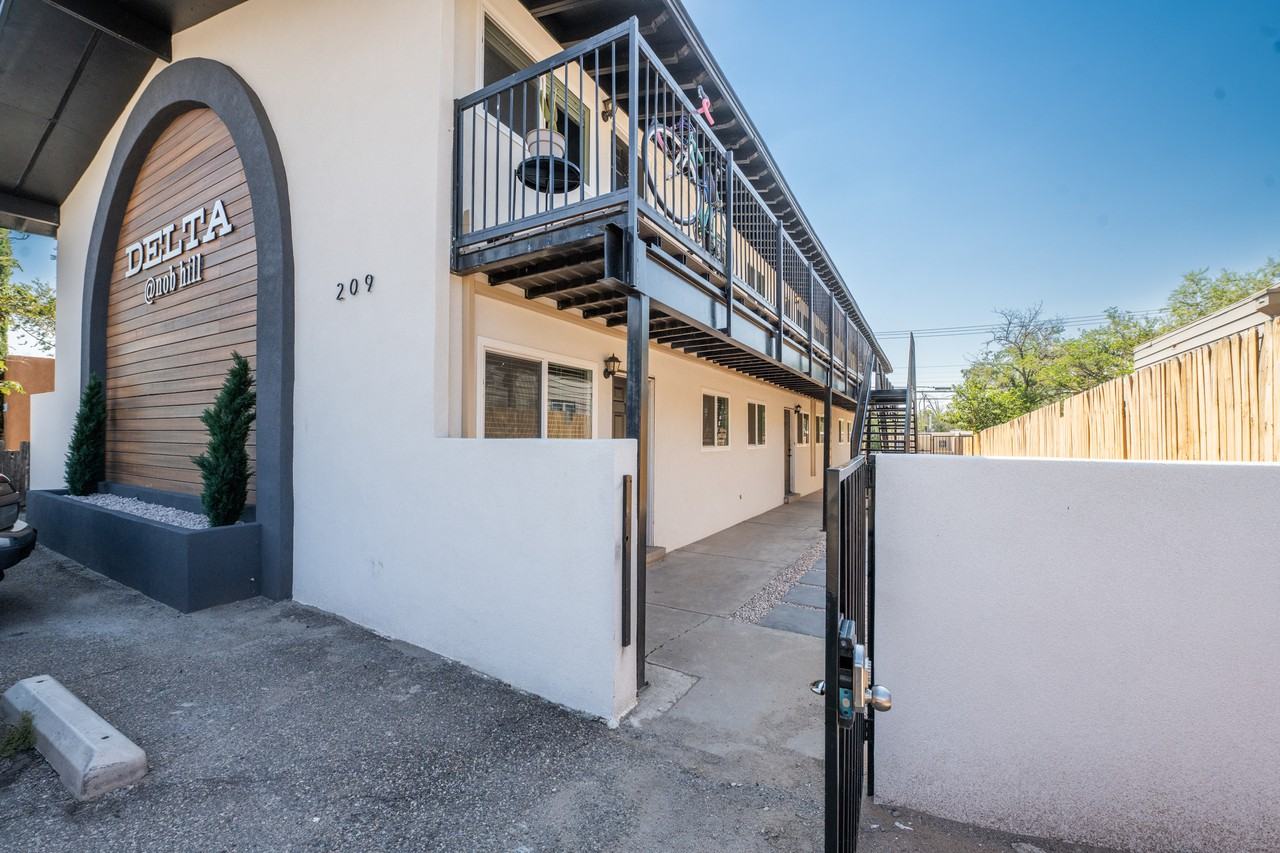 Walk Score. 95 Bike Score. Just 2 blocks to UNM and Nob Hill's finest entertainment, cafes, restaurants, and shopping. Completely renovated 1 bedroom apartments with wide open, space-saving floor plans. Complete exterior renovations with new stucco, new paint, new landscaping, and secured courtyard fencing. Inside, enjoy luxury vinyl plank flooring and new top end finishes and fixtures throughout. You'll love the great natural light through brand new thermal windows, 2" faux wood blinds, fresh paint, custom tile accents, and super pragmatic built-ins everywhere. Actually meet your desired interior temperature with state of the art mini-split heating and cooling systems. Large bedrooms with HUGE walk-in closets that double as bonus office spaces (with built-in desks). Kitchens with Quartz counters, full stainless appliance packages, built-in bars that double as additional work spaces, and floating built-in shelves. Multiple first floor Units available or coming soon. Grab yours before they're gone.