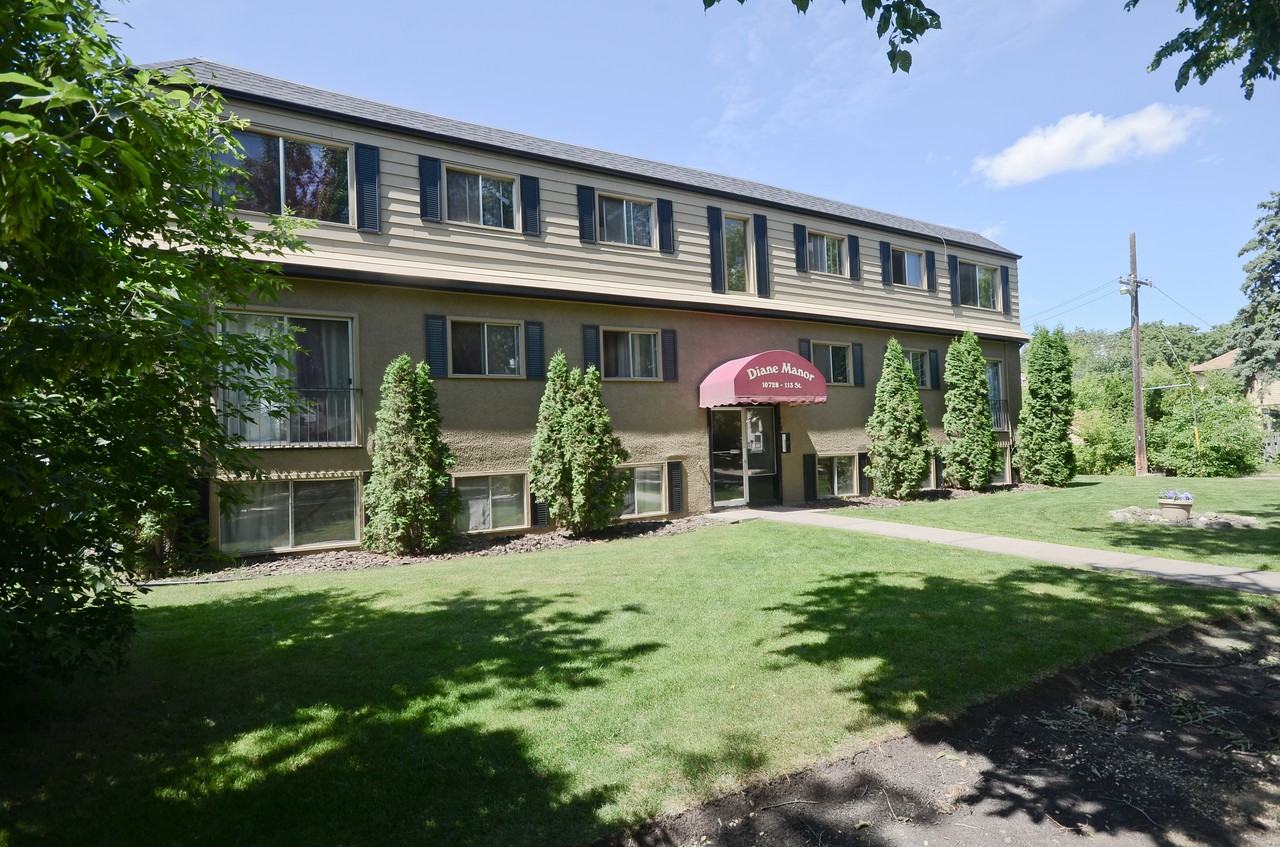 Diane Manor is a charming residential walk-up in Queen Mary Park with quick access to Downtown Edmonton, the Brewery District, Oliver Square and the new Ice District which features Rogers Place. Residents enjoy one and two bedroom suites, smart card laundry facilities, ample parking, yard with barbeque area and a friendly live-in caretaker. Shop close to home at Oliver Square, Kingsway Mall, and a variety of grocery stores including Save-On, Safeway and many ethnic stores just minutes away. Additionally, transit stops, banks, and convenience stores are within walking distance. Student residents can walk to the Grant MacEwan University campus, or take the short drive to NAIT, NorQuest College, or the University of Alberta. There are also many Public and Catholic Schools nearby. With just a short walk from home, residents can take in an Oiler's game at the Rogers Place Arena or try their luck at the Grand Villa Casino. Other community interests include the MacEwan University Sport and Wellness Centre and nearby parks.