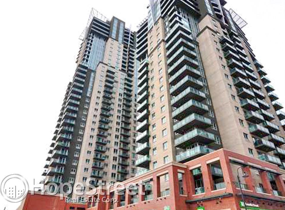Magnificent 2 bedroom unit with huge wrap around balcony, offering amazing stampede ground views! A large foyer greets you towards an amazing open floor plan. Terrific open den/ mudroom. Separate laundry room. Convenient closed storage. The impressive kitchen features an island for your casual dining, plenty of counter space, wonderful tiled backsplash and lovely cabinetry. The dining room leads to the huge balcony. Gas line to BBQ. The cozy living room is ready to entertain. The master bedroom features a full en-suite, access to the balcony, and a walk-in closet. The second bedroom features a connection to the stunning Jack and Jill bathroom. Short walk to downtown and LRT. Book a viewing today!