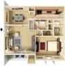 | Villa | 1 bed | 1 bath | 796 sqft | Open concept living dining area, washer dryer connections, private patio/balcony area with outside storage and large closets. | ||