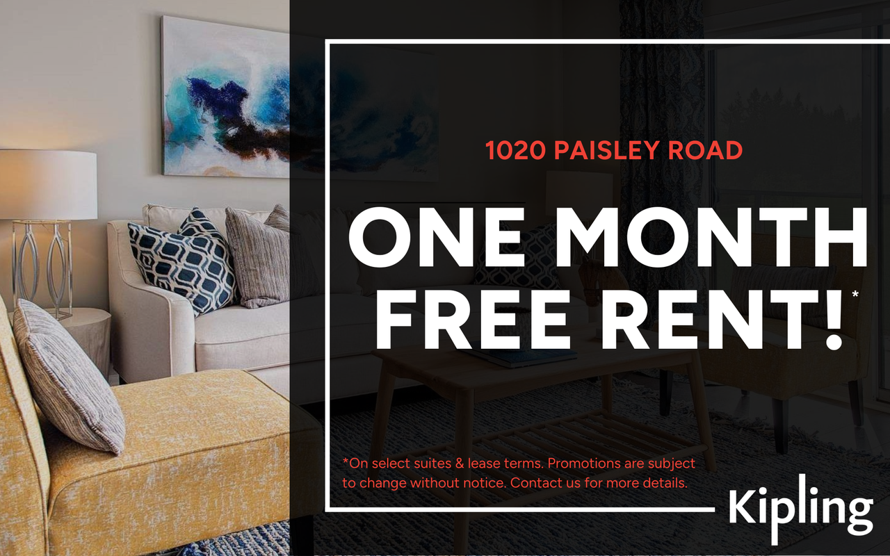 Receive 1 Month Free Rent!* Welcome to 1020 Paisley Rd at Paisley Square, a modern mid-rise rental community in Guelph's thriving west end. This thoughtfully designed building offers spacious open-concept suites with stainless steel appliances, in-suite laundry, and private balconies in select units. Located near Costco, Zehrs, LCBO, and the West End Community Centre, residents enjoy easy access to shopping, dining, and transit. With on-site parking, secure entry, and elevator access, 1020 Paisley Rd combines comfort, convenience, and contemporary living—all within a vibrant, family-friendly neighbourhood. *1 bedroom only. Promotions are subject to change without notice. Contact us for more details. Offer for new residents only