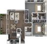 | Two Bedroom, Two Bath | 2 bed | 2 bath | 850 sqft |