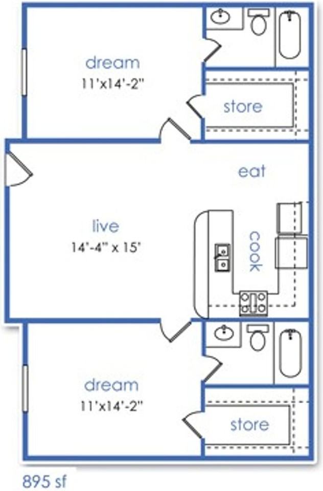 | 2 BR / 2 BA | 2 bed | 2 bath | 895 sqft | $1,399 /mo | 2 units available | This apartment includes - wood floors, large kitchen, with bar for bar stools, appliance package, open floor plan, large bedroom/bathroom & walk-in closet for each bedroom. We also have an on-site laundry facility on property. This property is located on the corner of Welch st. and W. Mulberry St. across the street from the Art Building on UNT Campus, 1 Block from Fry Street. https my matterport com show ?m=fbhgaGi1acB |
