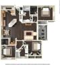 | C | 2 bed | 1 bath | 858 sqft | Featuring a modern kitchen, open spaces, large patio with storage, huge walk-in closet, garden style tub, washer and dryer included and more. | ||